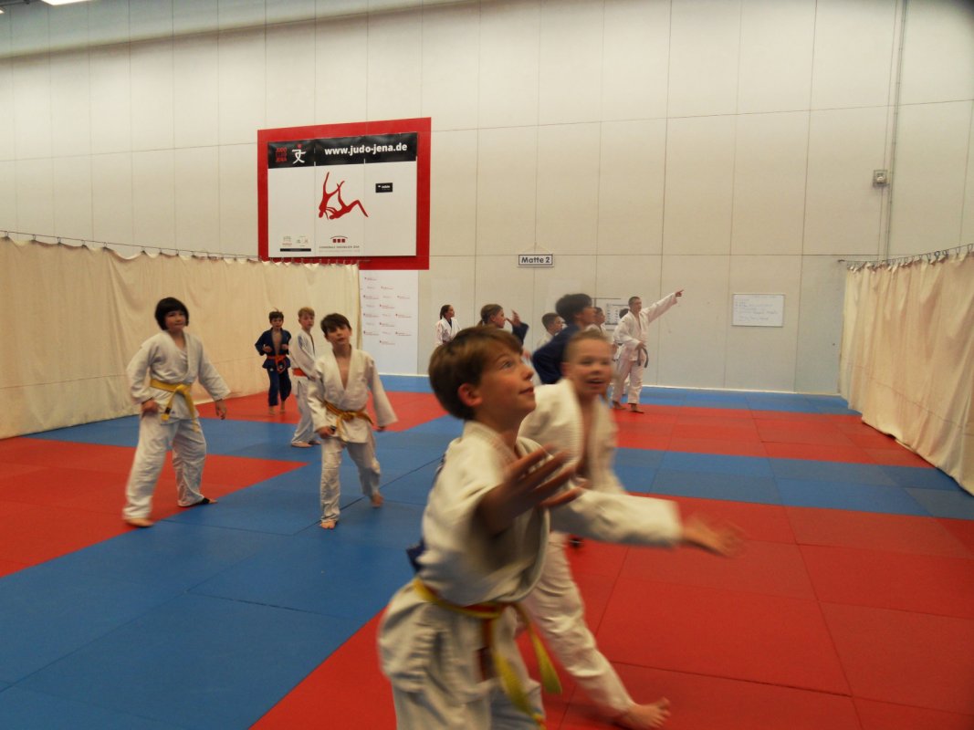Am Mittwoch leitete Anja Wagner/Leipzig, unsere ehemalige erfolgreichste Jenaer Sportlerin, das Training. Als ehemalige Junioren-Europameistern von 2003 gab sie einen Einblick in ihre Spezialtechniken im Stand und im Boden.