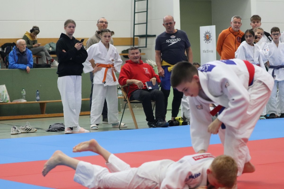 Dann ging es gegen die starke Kampfgemeinschaft Rodewisch/Chemnitz. Sie gewannen im Vorfeld gegen Stotternheim mit 6:2. Spannung bis zum letzten Kampf – es ging hin und her. Nach einem dramatischen Kampf stand es 4:4, leider verloren wir aufgrund der Unterpunkte mit 31:40. Die Siegpunkte für unser Team holten Emma Schuster/+57 kg, Elise Reuken/57 kg, Ilja Kacher/43 kg und Lene Krüger/40 kg.