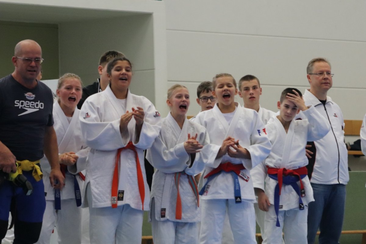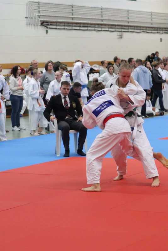 Der JC Jena war im 3er-Pool mit dem JSC Stotternheim und der KG Ippon Rodewisch/CPSV Chemnitz. Nach Freilos traf der Judoclub Jena auf den JSC Stotternheim. Nach harten „Gefechten“ gewann das Jenaer Team mit 5:3. Die Siegpunkte erkämpften Yasmin Bär/+57 kg, Julius Reuken/+60 kg, Elise Reuken/57 kg, Thore Schneider/43 kg und Amina Bairamova/40 kg. Toller Teamgeist nach dem Auftaktsieg gegen Stotternheim!